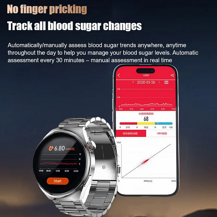 Painless Blood Glucose & Oxygen Monitoring Smart Bluetooth Health Watch
